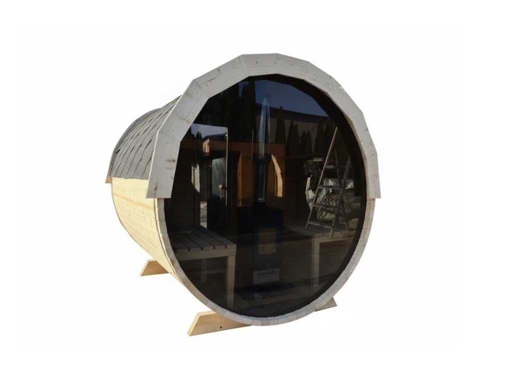 Rozměr prosklení je přizpůsoben pro standardní saunové sudy o průměru 200 cm.