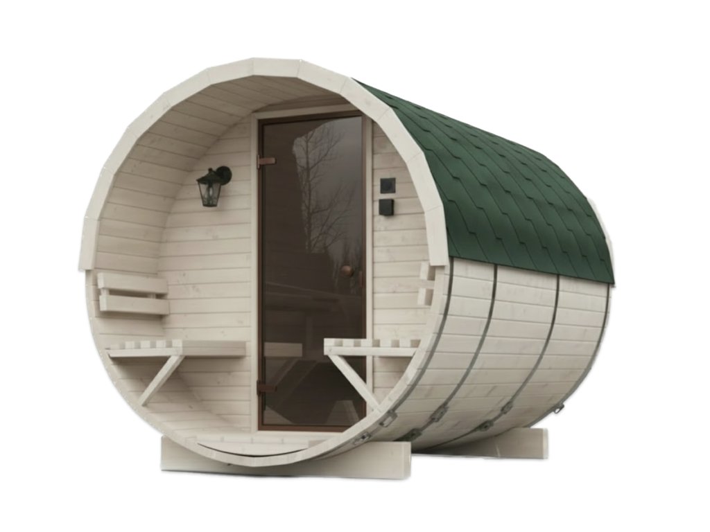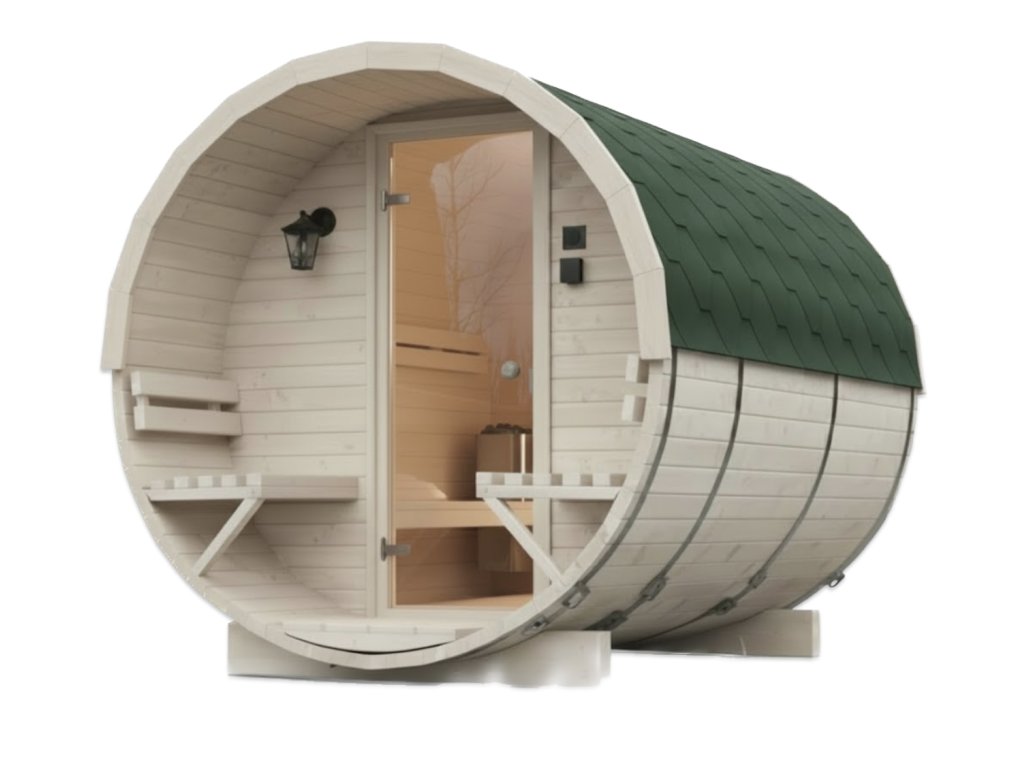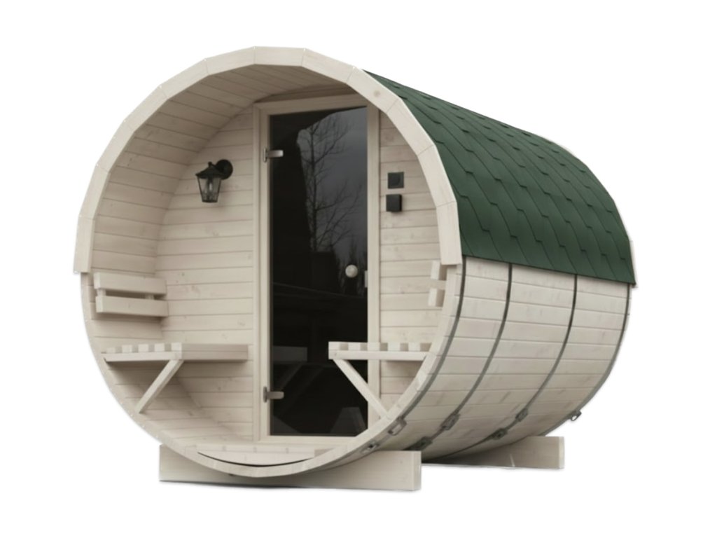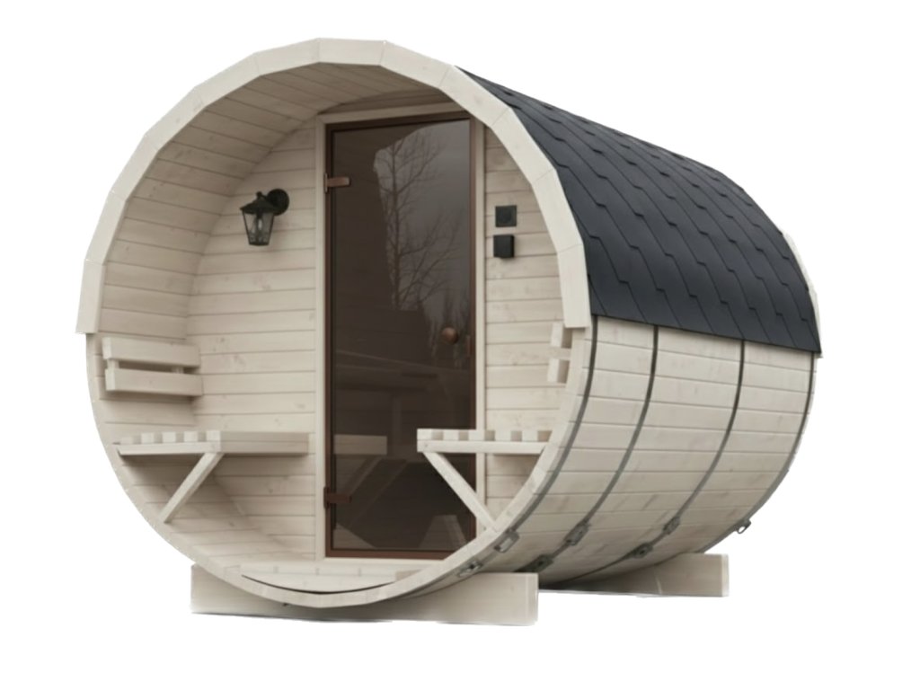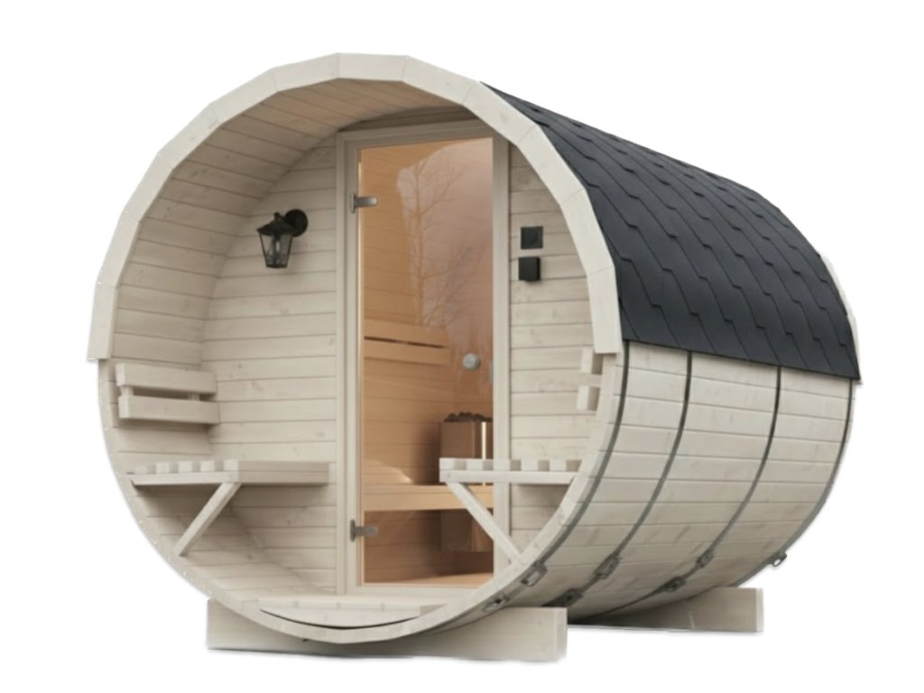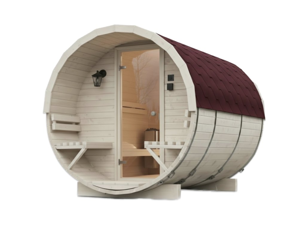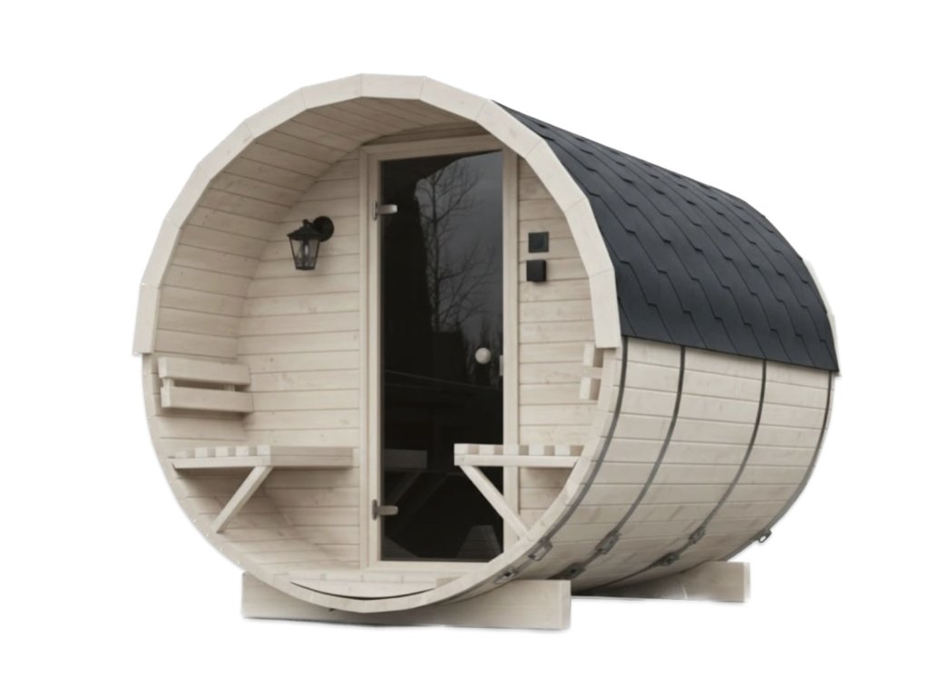 Její sudovitý tvar nejenže přidává eleganci, ale také napomáhá efektivnímu zahřívání interiéru. Díky tomu si můžete užívat uklidňující teplo již po několika minutách. Dřevo ze skandinávského smrkového profilu C24 (tloušťky 45 mm) má vynikající izolační vlastnosti, což znamená, že sauna je ideální i v zimních měsících.