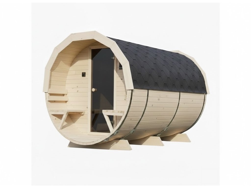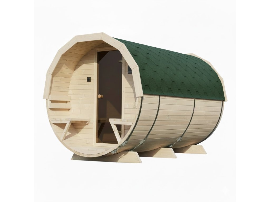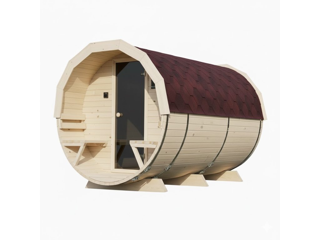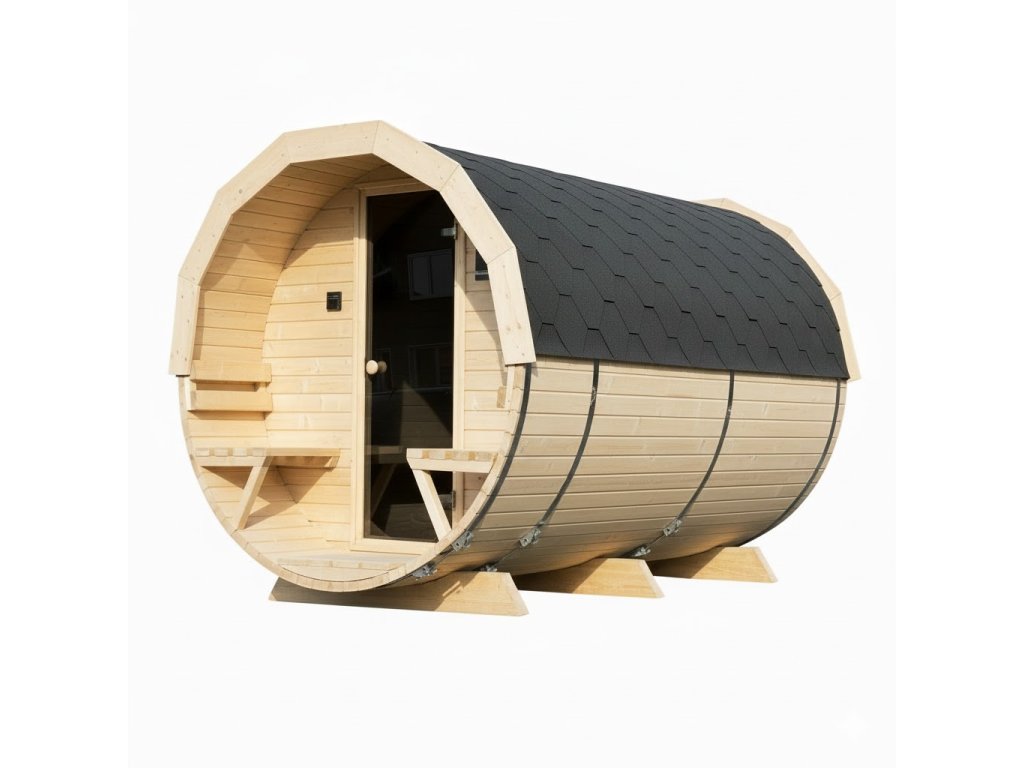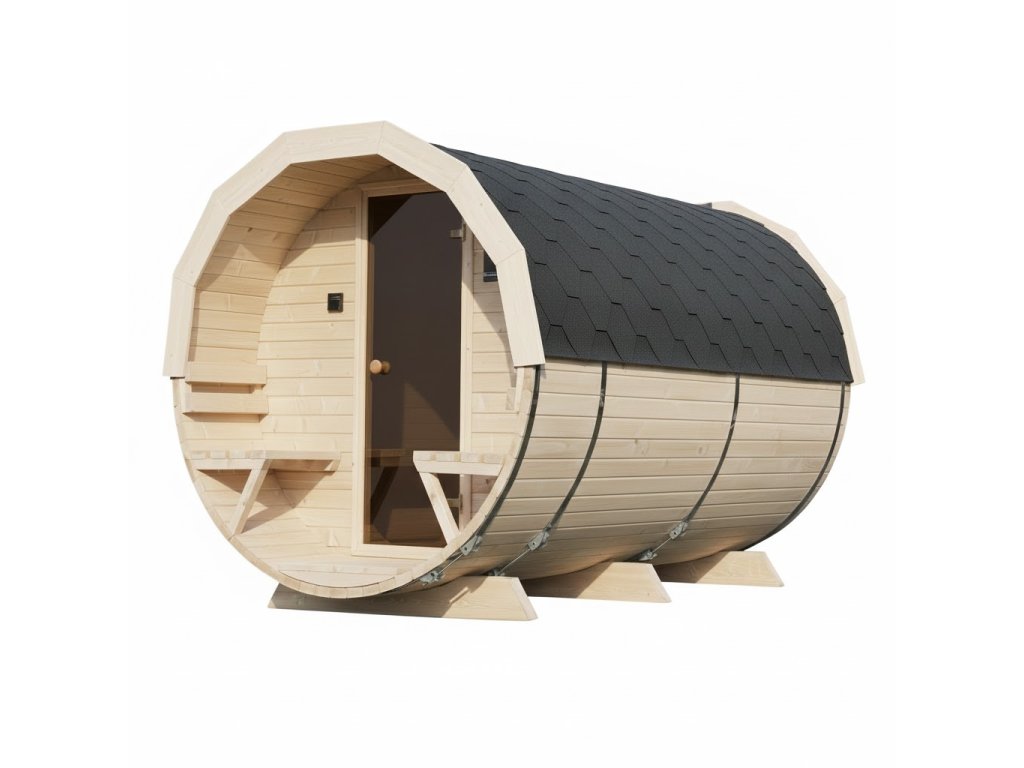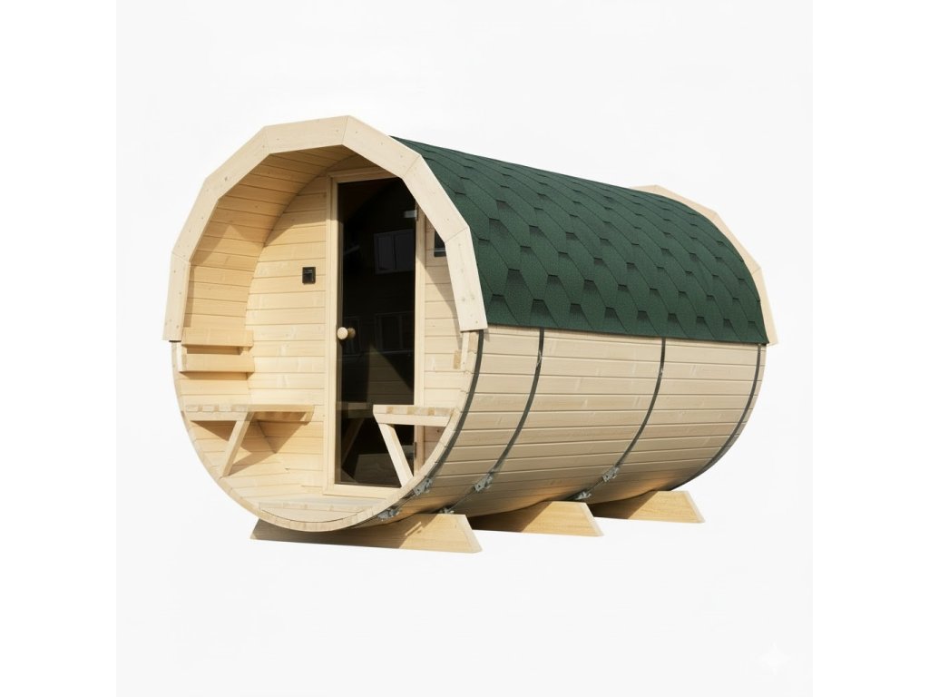 Tento model je vyroben z přírodního skandinávského smrkového dřeva, které nejen skvěle vypadá, ale také výborně izoluje teplo. Sudový tvar umožňuje rychlé vyhřátí interiéru a dlouhodobé udržení teploty, což přináší úsporu energie a efektivní provoz sauny.